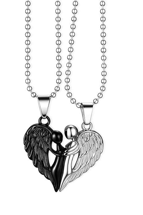 Crafted with precision and passion, these pendants are made from premium-quality alloy with a high-polish Black and silver finish, giving them an elegant shine. The angelic wings add a divine touch, symbolizing protection, purity, and eternal affection.