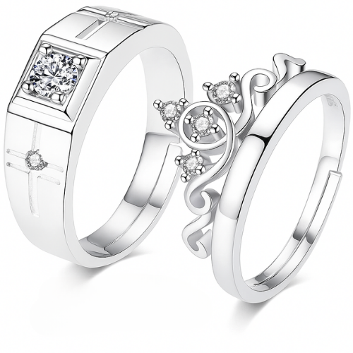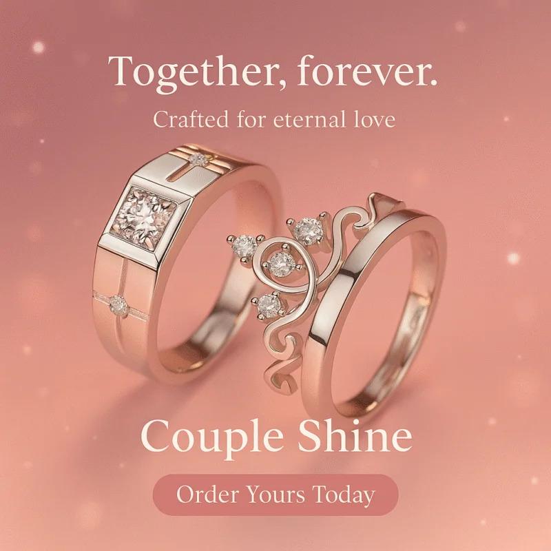Celebrate your eternal bond with this stunning pair of couple rings β one regal, embedded with a solitaire centerpiece and intricate engravings for him, and the other a delicate crown-inspired design with sparkling diamonds for her. Perfect for engagements, anniversaries, or just to say βI choose you, always.β