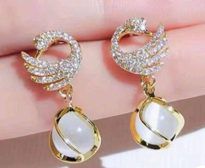 \nOne day, while Browse an artisan's collection, her eyes fell upon a pair of earrings that seemed to whisper this very secret. They were shaped like swans, their feathered forms shimmering with tiny, brilliant stones, and beneath each swan, a luminous, tear-shaped drop glowed with a soft, milky light, like a hidden pearl from the depths of the lake.